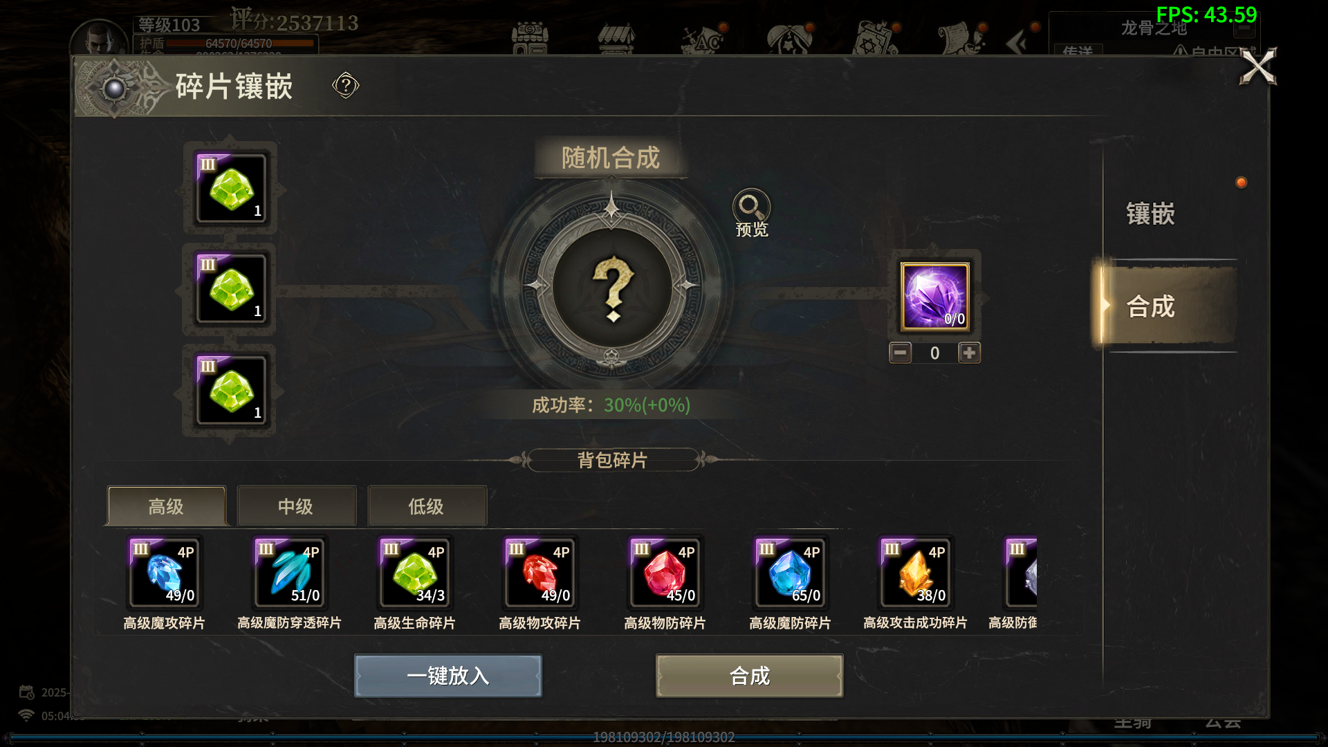 碎片合成必须使用同级别的碎片才能合成,每次合成有基础成功率,使用对应的合成添加剂可增加成功概率,合成失败有50%概率返还其中一个碎片。合成成功可获得一个高一级的随机种类碎片。