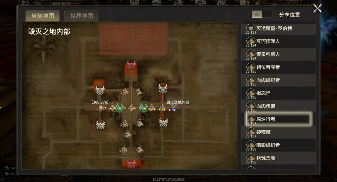 腐烂行者镇守的毁灭神迹位置在(262,274),可通过小地图点击腐烂行者进行寻路,找到毁灭神迹点击进入副本完成挑战即可。