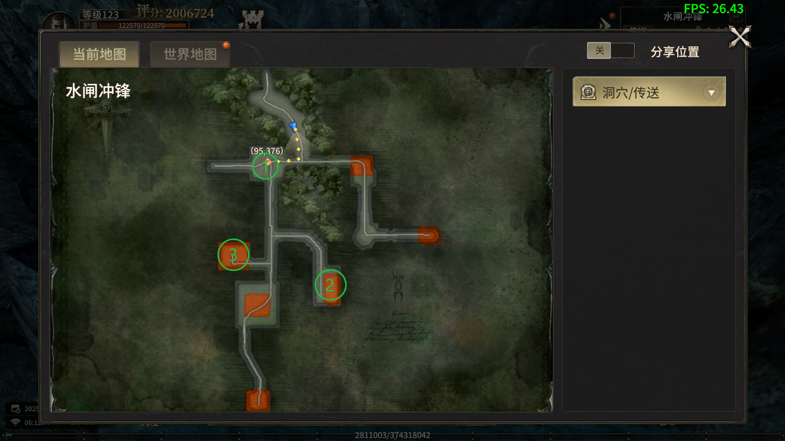 在水闸冲锋任务副本中共有三处怪物需要清理,具体的位置如下图所示。