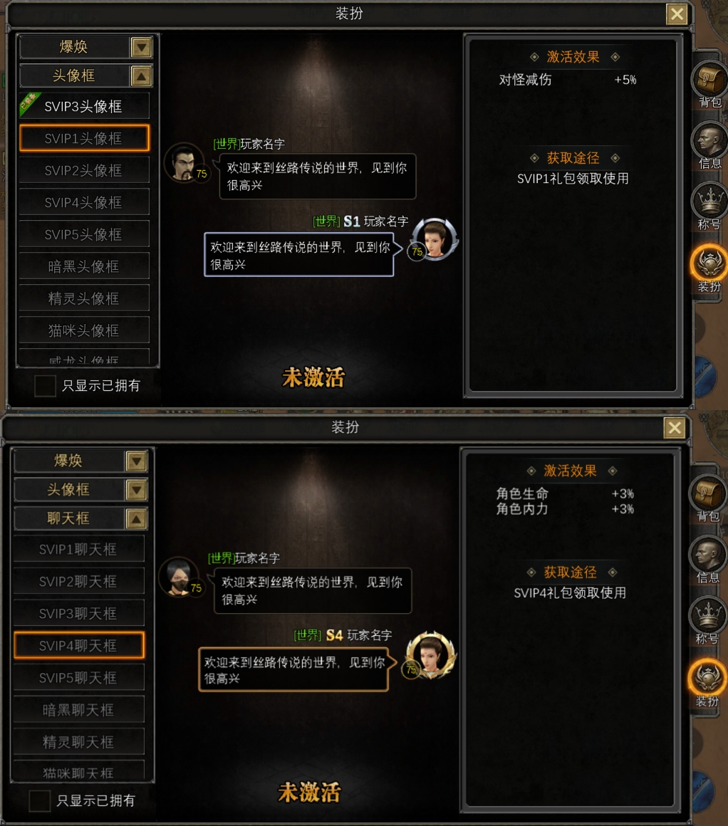 2)SVIP的头像框和聊天框上增加特殊属性(之前无属性);